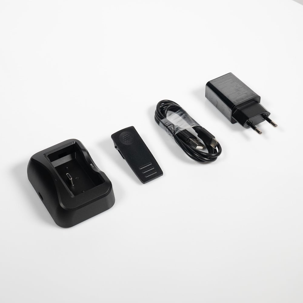 Нагрудний відеореєстратор з вбудованим WiFi, GPS, екраном, Type-C інтерфейсом. Якість запису відео: 2560x1600/30fps, 2304x1296P/30fps, 1920x1080/30fps, 1440x1080/30fps, 1280x720/30fps. Роздільна здатність фото: до 32 Мп. Кут огляду: 130°. ІЧ-підсвічування до 12 м. Запис на вбудовану пам'ять 128 ГБ. РК-екран 2". Вбудований мікрофон. Роз'єм: USB Type-C. Ємність батареї: 3600mAh. Час роботи: до 12 годин. Ступінь захисту IP68. Габаритні розміри: 83 / 56 / 30 мм. Вага: 144 г. У комплекті блок живлення, кабель USB Type-C, док-станція, металева кліпса для кріплення