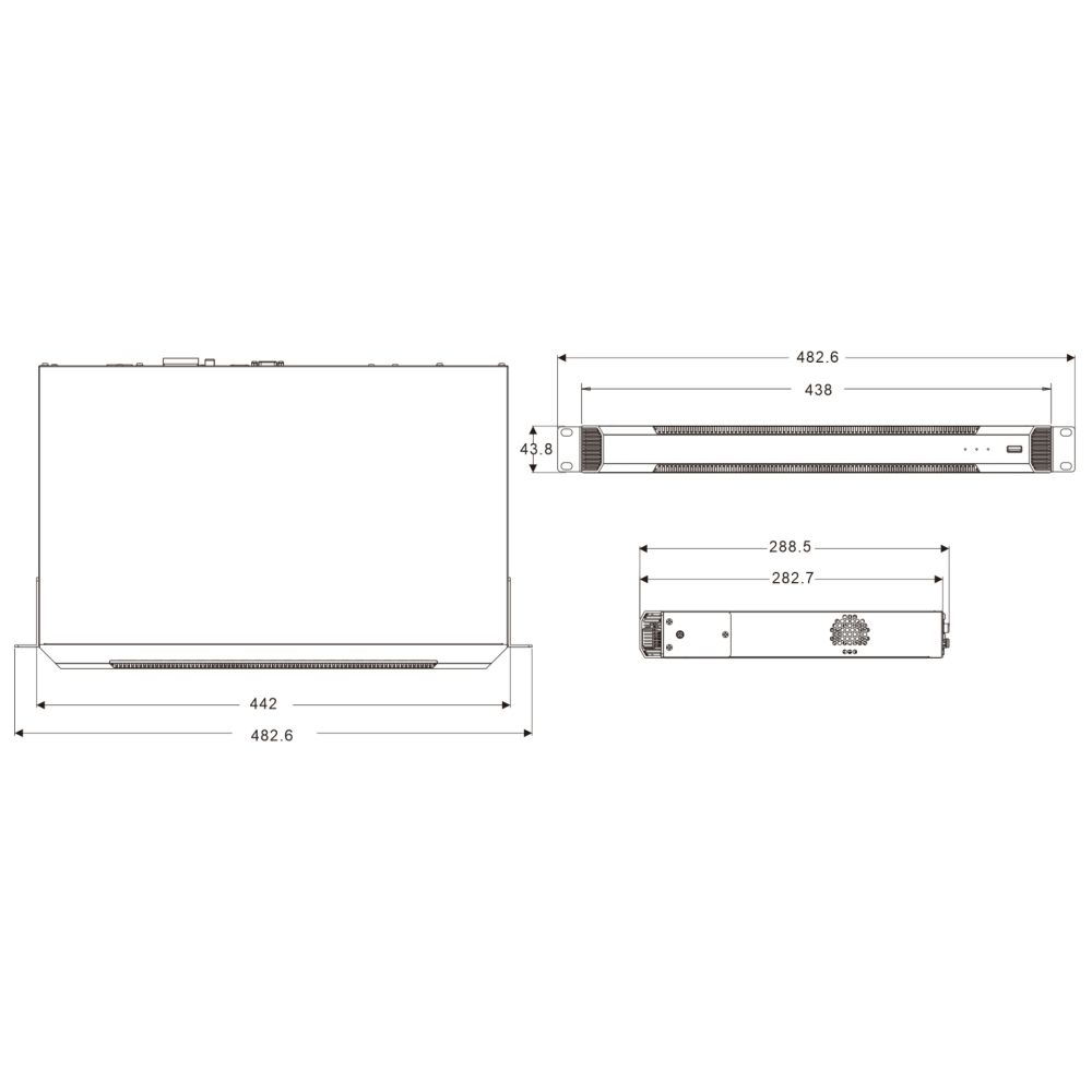 Сервер для відеоспостереження; ОС Linux; пам’ять LPDDR4 8G, 64GB EMMC; 2x RJ45 10/100/1000M; 3.5" SATA HDD x2, до 10 ТБ кожен; пропускна здатність 512 Мбіт/с; інтерфейси: VGA x1, HDMI x2; 1 аудіовихід (MONO), підтримка аудіовиходу HDMI1; 4 тривожних входи, 4 тривожних виходи; USB3.0 x1, USB 2.0 x2; макс. кількість каналів доступу 512; кількість користувачів 64; кількість пристроїв 256; макс. роздільна здатність відтворення у режимі реального часу 16 Мп; база даних облич 20000, база даних автомобільних номерів 10000; живлення ATX150W; розміри 482.6 / 288.5 / 43.8 мм