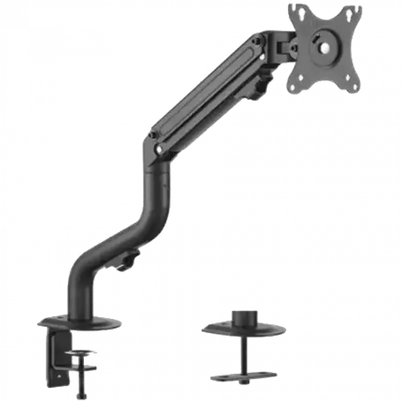 ● Настільний кронштейн для монітора з одним кріпленням;● Кронштейн обертається, висувається та втягується, нахиляється для зміни кута читання та дозволяє повертати дисплей з альбомного положення до портретного тощо;● Забезпечує просте ергономічне позиціонування для зниження навантаження;● Працює практично з будь-яким РК-монітором (макс. 32 дюйми);● Міцні регульовані газові пружини підходять для моніторів вагою від 2 до 8 кг;● Міцний затискач для легкої та надійної фіксації;● Вбудована система кабельменеджменту для організованого та акуратного робочого простору;● Сумісність з VESA (100 x 100 мм та 75 x 75 мм)
