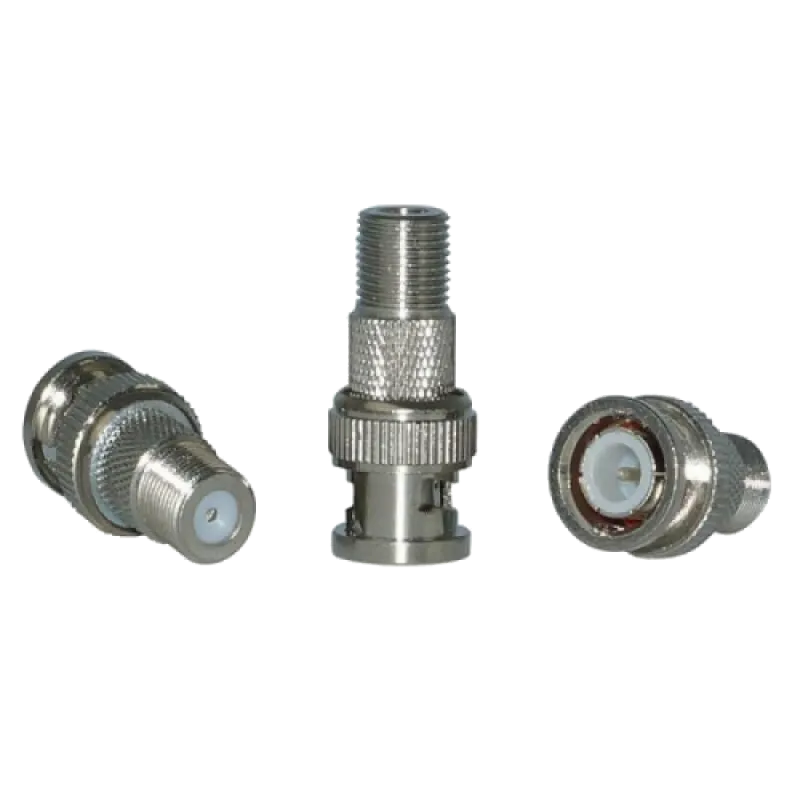 Перехідник BNC - F. З однієї сторони має гніздо F, з іншої BNC штир. BNC роз'єми необхідні для подачі відео і аудіо сигналів. Перехідник штекер BNC - гніздо F дозволяє швидко і надійно підключити коаксіальний кабель будь-якого типу до BNC роз'єму обладнання, використовуючи відповідний кабелю F коннектор.