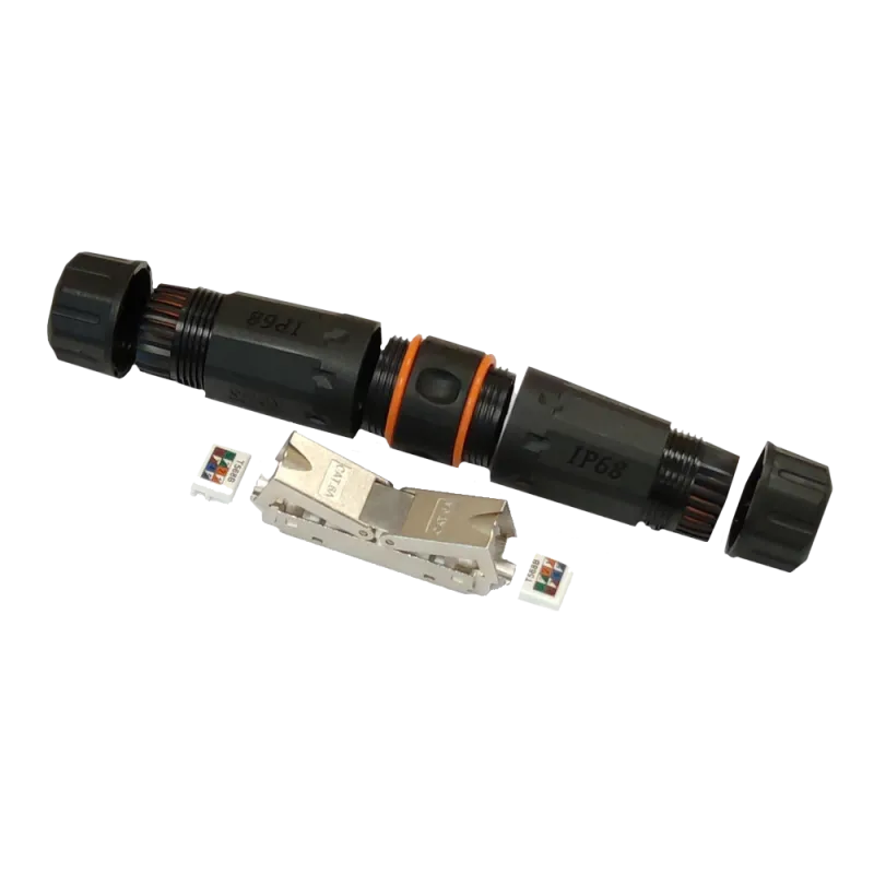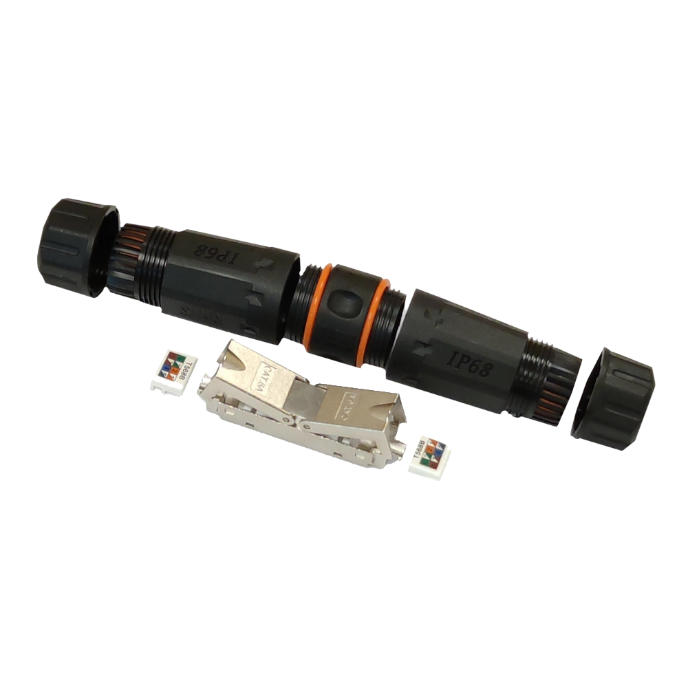 Являє собою з'єднувач з металевим корпусом і герметичну муфту, в якій він і розміщується. Безінструментальний монтаж (не потрібний обтискний інструмент). Відповідає стандарту категорії 6а. Відповідає стандарту вологого захисту IP68. Матеріал зовнішньої муфти: нейлон PA66. Підходить для кабелю діаметром від 5,0 до 7,5 мм.