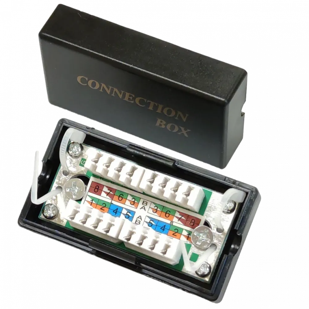 З'єднувальна розетка служить для з'єднання з мінімальним загасанням мідного сигналу кабелю категорії 5е. Є пластмасовою розбірною коробочкою, всередині знаходяться місця для жил кабелів під «забивання». Тип контактів: Krone IDC блок із міткою колірного коду