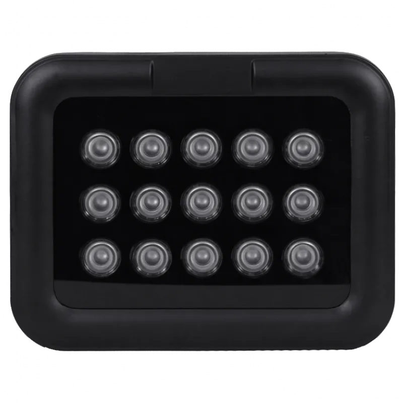 ● Дальність ІЧ-підсвічування складає 80 м;● ІЧ-прожектор з 15 світлодіодів, з довжиною хвилі 950 нм і кутом променя 60°. Завдяки довжині хвилі 950 нм підсвічування прожектора непомітно вночі;● Напруга живлення 12 В, струм споживання 0.7 А;● Металевий корпус чорного кольору з класом захисту IP66;● Можливість використання поза приміщеннями.